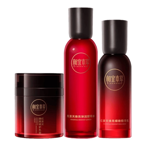 3. 相宜本草红景天套装之前测过不少提亮类产品,要么是涂完脸很油,要么是效果不明显,这款是少数能做到 “清爽提亮” 的。它的核心成分是红景天提取物,这种成分抗氧化能力强,实测油皮连续用三周,脸上的暗沉感会减轻,尤其是 T 区,不像之前那么容易泛油光了。